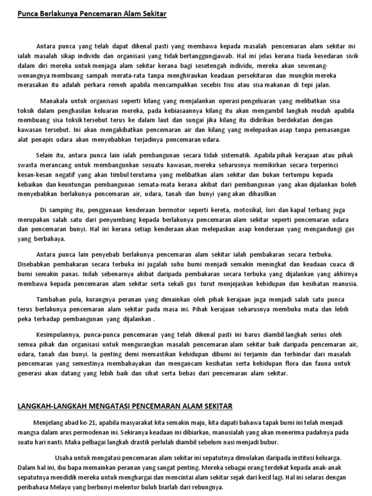 Karangan Fakta Punca Punca Berlakunya Pencemaran Alam Pdf
